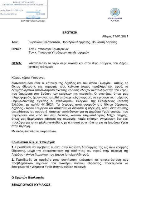 Θέμα: «Το Νοσοκομείο Χαλκίδας αντιμετωπίζει τεράστιο πρόβλημα στελέχωσης σε ιατρικό και νοσηλευτικό προσωπικό»